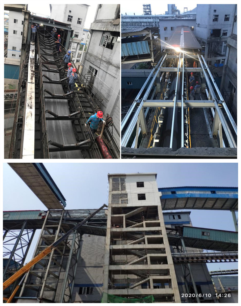 至新區(qū)7、8號焦?fàn)t輸煤生產(chǎn)線是焦化筒倉一期一步工程施工難度最大的一條生產(chǎn)線,新建3個轉(zhuǎn)運站、2條皮帶通廊、改造1條皮帶通廊,全長400多米。皮帶通廊即有半地下鋼筋混凝土結(jié)構(gòu)也有架空鋼結(jié)構(gòu),架空部分緊靠鐵路及高落差護(hù)坡,與生產(chǎn)嚴(yán)重交叉,組織施工及吊裝難度極大。項目部各專業(yè)人員積極配合,協(xié)調(diào)各施工單位,分段作業(yè),由于組織得力,各專業(yè)銜接緊密、配合緊張有序,土建積極給鋼結(jié)構(gòu)、鋼結(jié)構(gòu)積極為機(jī)裝、機(jī)裝積極為電裝及后工序創(chuàng)造條件,特別是最后三天,鋼結(jié)構(gòu)收尾、支架及皮帶安裝、單機(jī)調(diào)試、設(shè)備運行調(diào)整、舊皮帶通廊改造、新舊系統(tǒng)聯(lián)動控制調(diào)試、照明報警及語音系統(tǒng)安裝調(diào)試,時間緊任務(wù)重施工難責(zé)任大,現(xiàn)場各類施工人員多,項目部人員靠現(xiàn)場,緊抓安全,積極協(xié)調(diào),最終克服了各種困難,最終超額提前圓滿完成任務(wù)。
