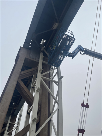 項目開工后,項目部將施工圖與現場實際巧妙結合,立足保證原棧橋系統完整、獨立運行為宗旨,攻克多項改造重點、難點。如利舊原有承臺短柱、鋼柱貫穿制動板現場加固、斜桿穿吊車梁腹板并規避電纜橋架等障礙物、大跨度屋面桁架梁跨外吊裝等。提前策劃好每個節點,做到現場施工完全落實設計意圖,實現了結構安全、質量可靠、進度可控、經濟合理。