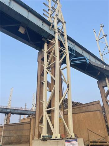 天管廢鋼料場揚塵治理項目為非常規的工業改造項目。投標階段在天津分院與鋼結構建筑咨詢設計研究院的共同努力下,創造性地提出了方管格構式四肢鋼柱包裹原砼棧橋柱、鋼柱上穿既有吊車梁方案,盡量減少現場加固改造工作量,有效規避加固改造的不確定因素,既保證了結構安全性、投資經濟性,又規避了標書中的重重限制,最終以商務標第一和技術標第一的得分順利中標。
