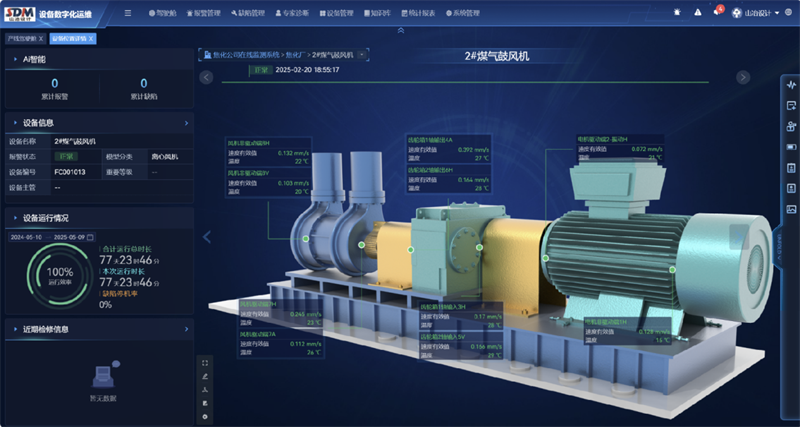 基于三維數字化設計(BIM)構建的數字孿生工廠,成為可視化管理的“利器”。在集控中心大屏上,廠區(qū)三維模型與實時數據無縫融合:點擊焦爐,可查看各炭化室結焦進度;進入地下室,可查看巡檢機器人的運行狀況和巡檢實時影像;切換至環(huán)保頁面,廢氣排放濃度與處理設備狀態(tài)和報警一目了然。系統(tǒng)還能聯(lián)動視頻監(jiān)控與消防設施,在發(fā)生異常時自動定位報警點、投放監(jiān)控影像并顯示周邊消防資源,極大地縮短應急響應時間。
