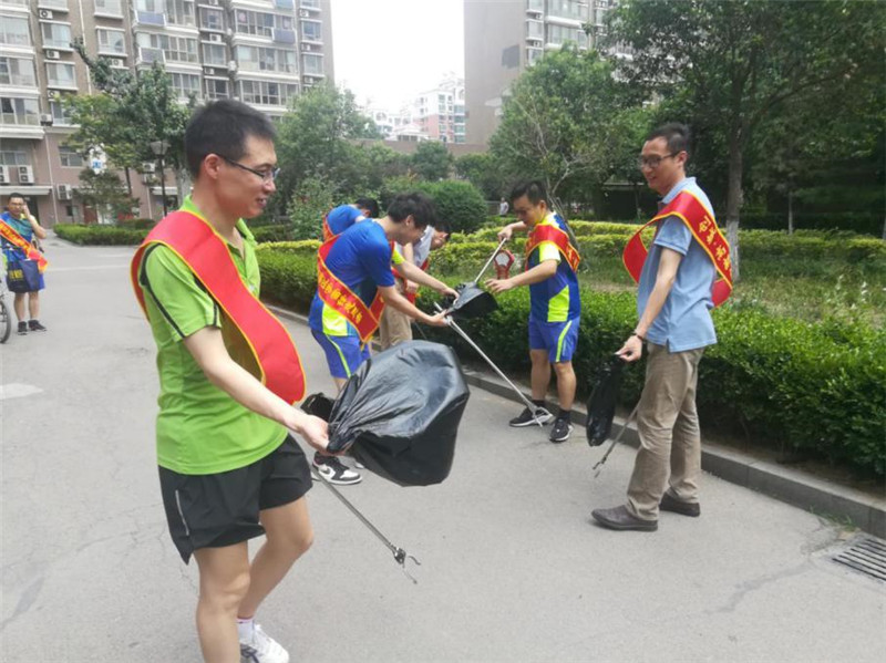 上午10時,烈日當空,志愿者們佩戴綬帶,手持雜物夾,穿梭于會展轄區的各個角落,對轄區內的主次道路、社區內外綠化帶中的白色垃圾、紙屑、煙頭進行撿拾,對小廣告、污染物進行了集中治理。經過志愿者們的共同努力,社區環境衛生情況有了明顯改觀。