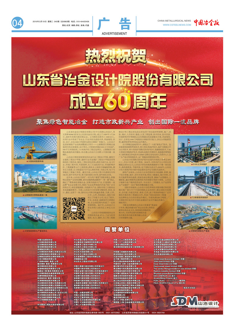 熱烈祝賀山東省冶金設(shè)計(jì)院股份有限公司成立60周年