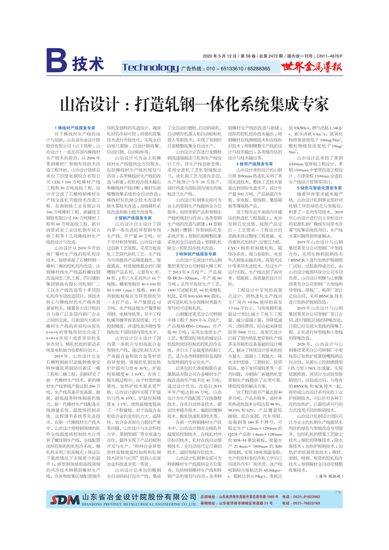 山冶設計:打造軋鋼一體化系統集成專家